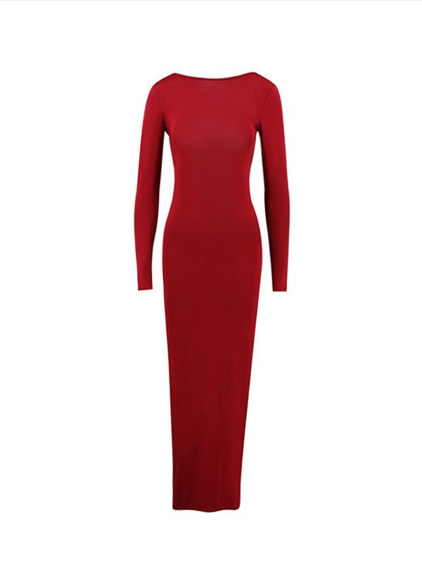 Momyknows Solid Color Cascading Ruffle U-Neck Long Sleeve Bodycon Elegant Going Out Gowns Cute Bandage Baby Shower Maternity Maxi Dress