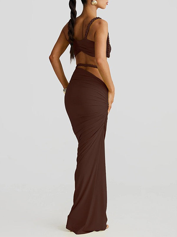 Coffee Cross Chest Ruched Grenadine Maternity Photoshoot Maxi Dress