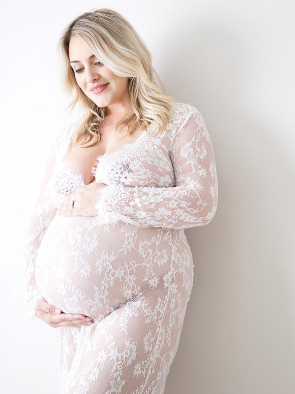 Sheer Lace Robe V-neck Bathtub Photoshoot Maternity Maxi Dress