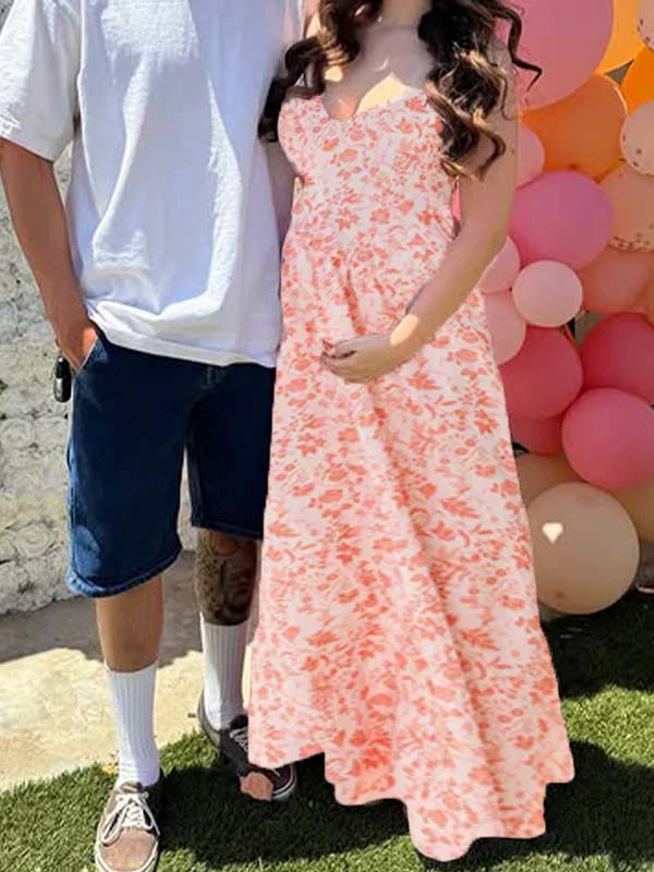 Momyknows Printed Cami Big Swing Backless Elegant Maternity Maxi Dress