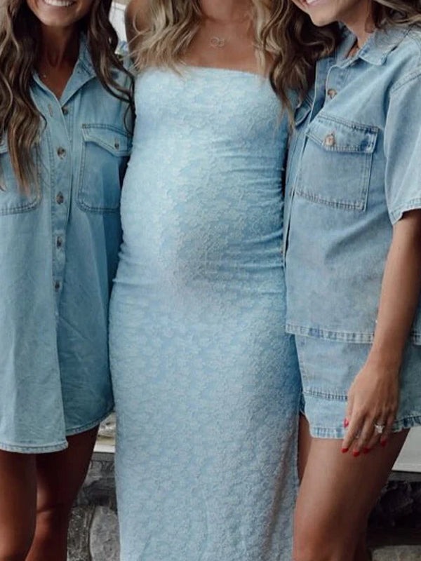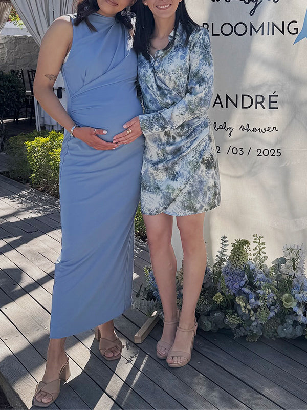 Momyknows Light Blue Stamp Duty Bodycon Maternity Baby Shower Maxi Dress