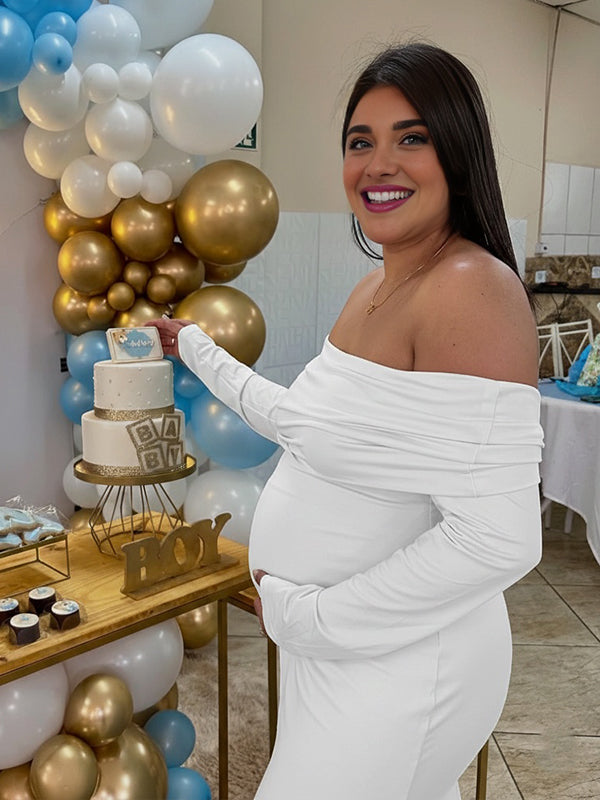 Momyknows White Off Shoulder Backless Bodycon Maternity Maxi Dress