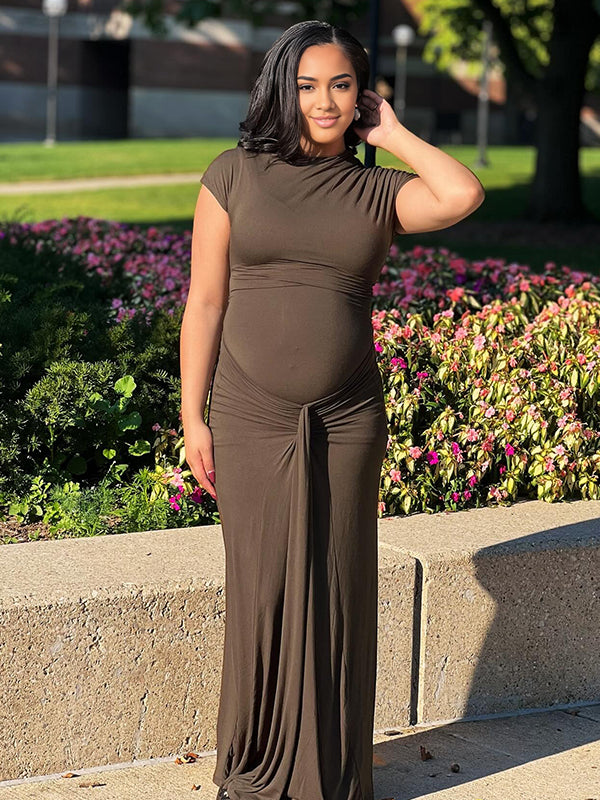 Momyknows Cross Chest Ruched Two Piece Maternity Photoshoot Maxi Dress