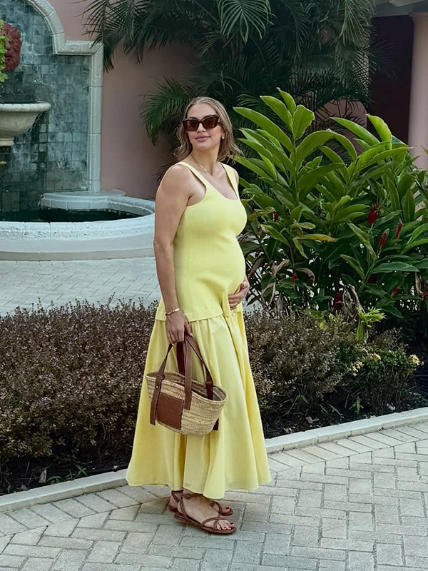 Momyknows Yellow Knit Flowy Splicing Maternity Maxi Dress