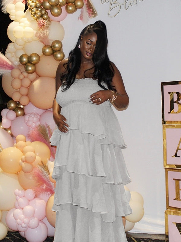Momyknows Smocked Falbala Ruffle Maternity Baby Shower Maxi Dress