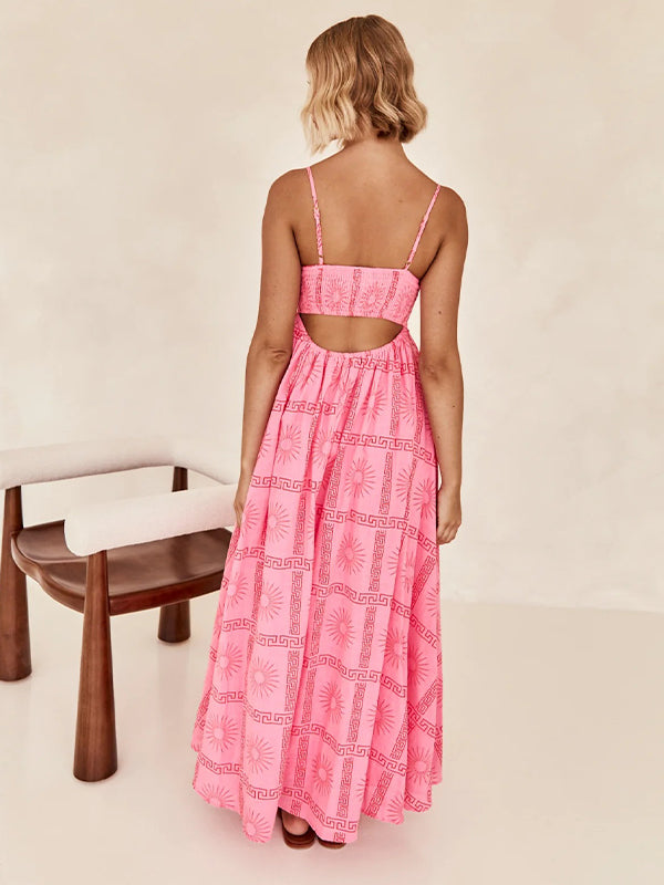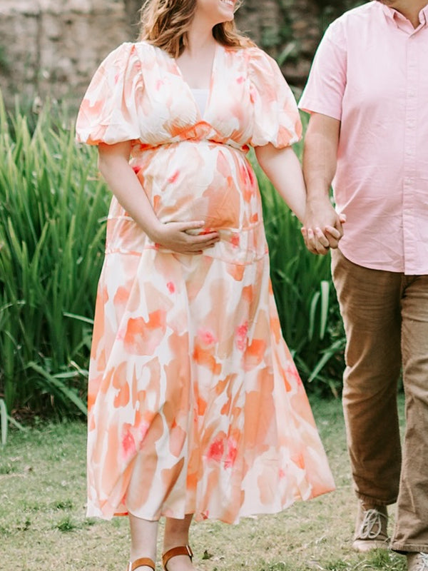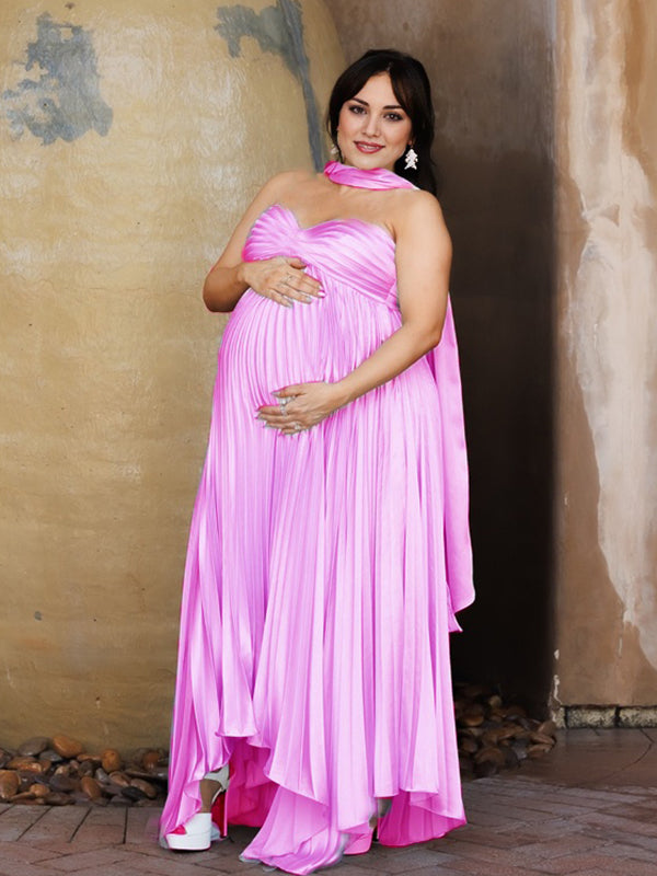 Momyknows Pink Print Bohemian Pleating Maternity Photoshoot Maxi Dress