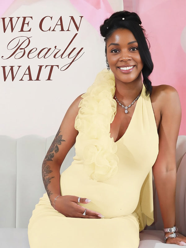 Momyknows Yellow Tulle Ruffle Halter Neck Backless Maternity Maxi Dress
