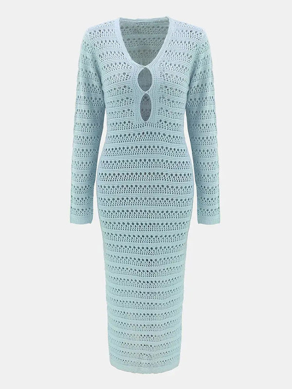 Momyknows Blue Crochet Hollow Out Sheer Cover Up Maternity Maxi Dress