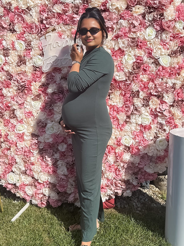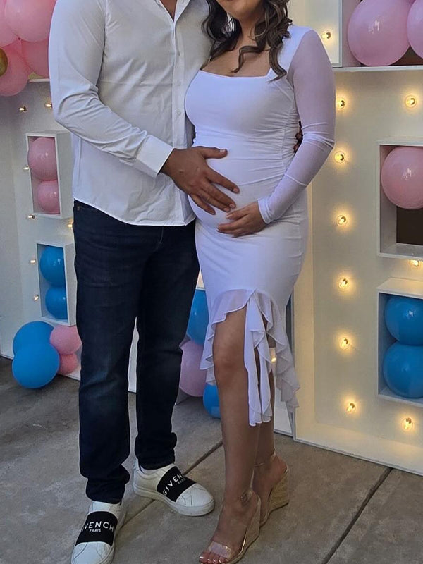 Momyknows Ruched Side Slit Baby Shower Maternity Maxi Dress
