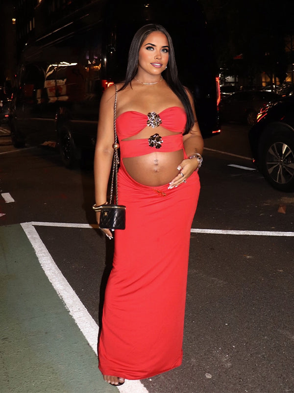 Momyknows Buckle Cut Out Tube Party Maternity Maxi Dress