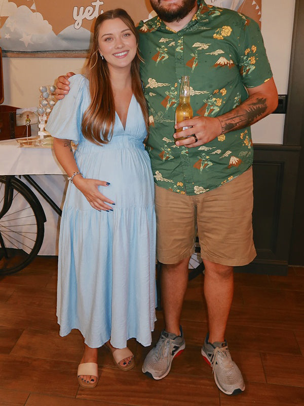 Momyknows Blue Smocked Flowy Baby Boy Shower Maternity Maxi Dress