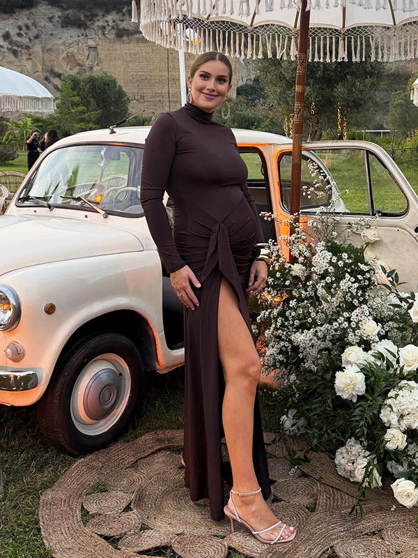 Momyknows Cowl Neck Buckle Photoshoot Maternity Maxi Dress