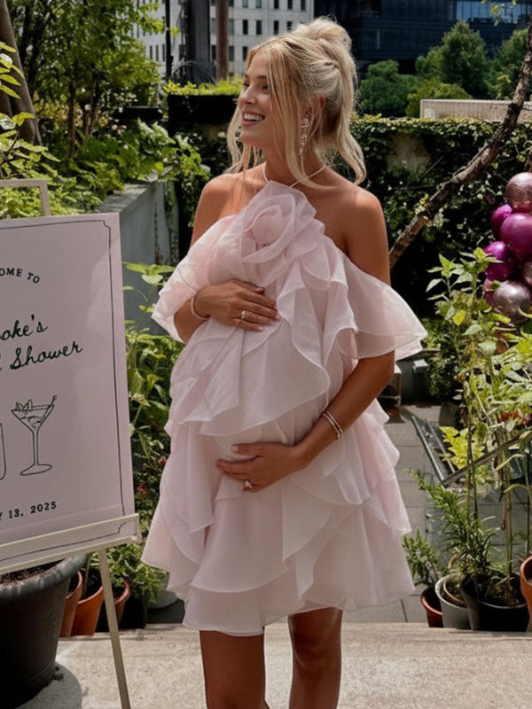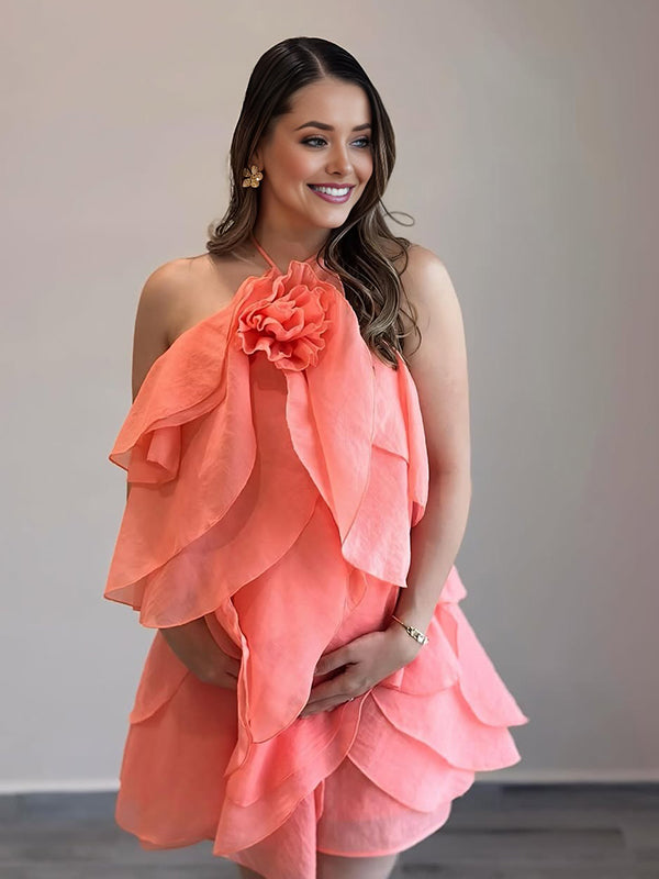 Momyknows 3D Flower Layered Ruffle Cami Backless Maternity Mini Dress
