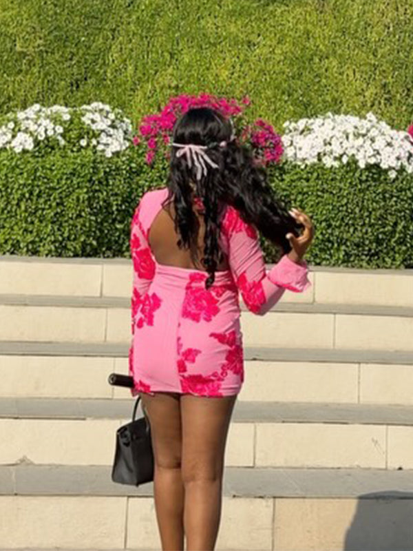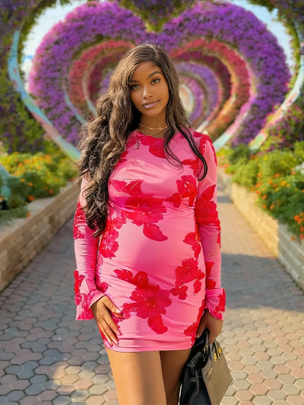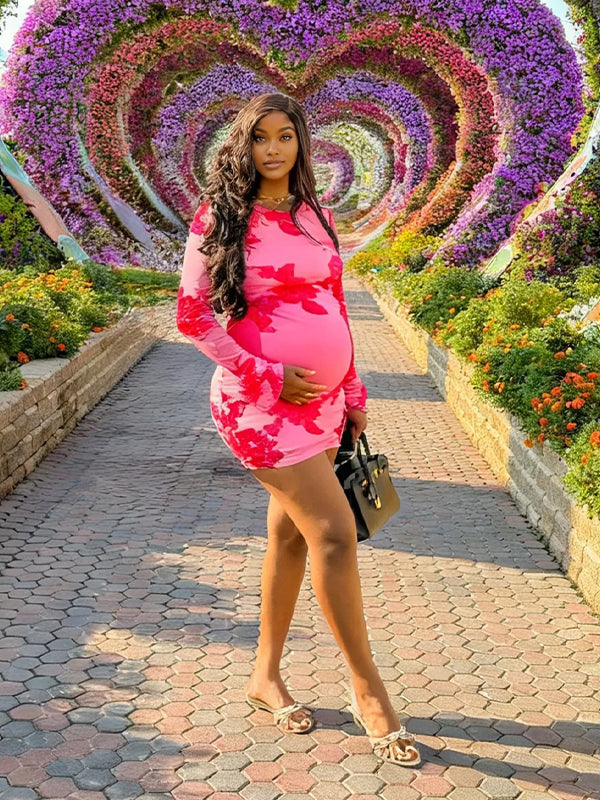 Momyknows Rose Pink Embroidery Floral Maternity Mini Dress