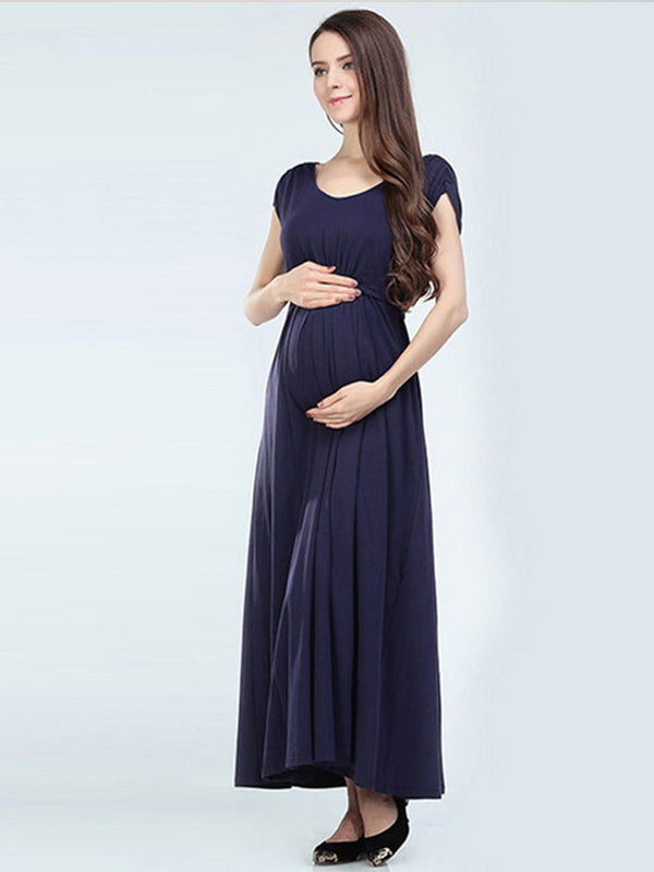 Momyknows Solid Color Adjustable Belt V-neck Short Sleeve Breastfeeding Elegant Going Out Daily Maternity Nursing Maxi Dress