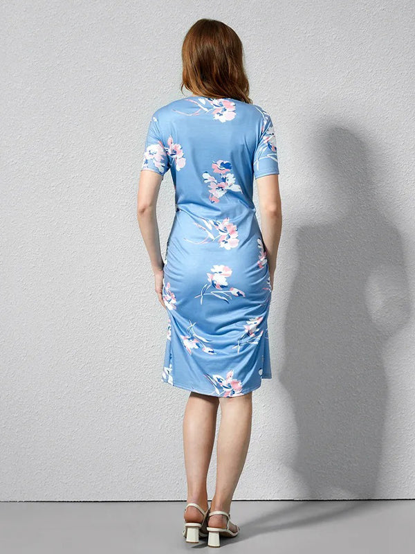 Momyknows Tiered Flowers Ruched Plus Size Maternity Midi Dresses