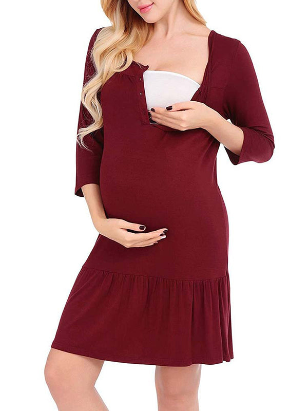 Momyknows Buttons Maternity Nursing Dresses