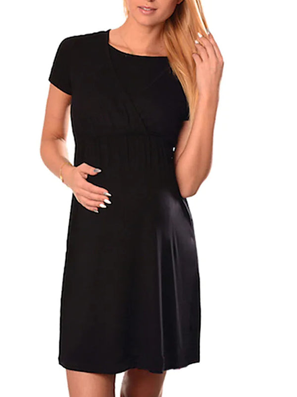 Momyknows Cross Chest A-line Breastfeeding Casual Maternity Nursing Mini Dress