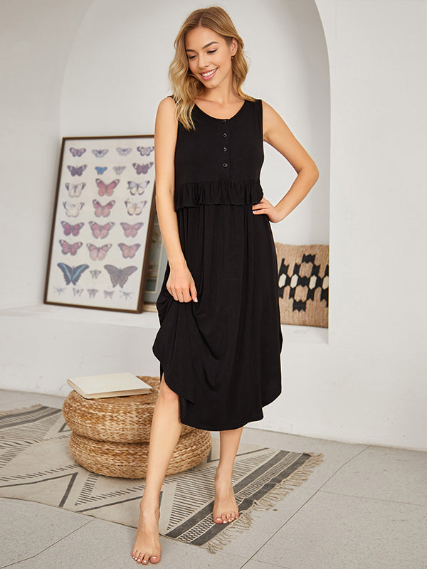 Momyknows Round Neck Sleeveless Buttons Ruffle Flowy Casual Daily Maternity Nursing Dresses