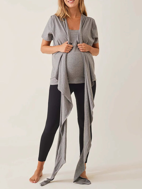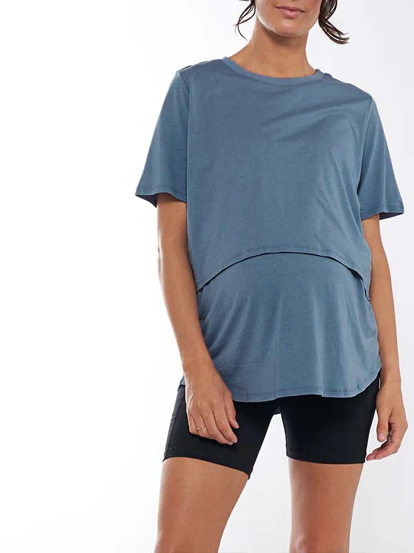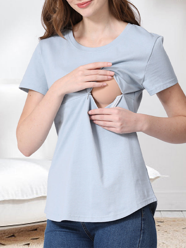 Momyknows Round Neck Short Sleeve T-shirt Casual Comfy Maternity Nursing Tops