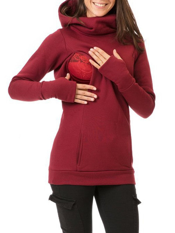 Momyknows Hooded Solid Color Long Sleeve Baby Shower Maternity Daily Nursing Sweatshirt