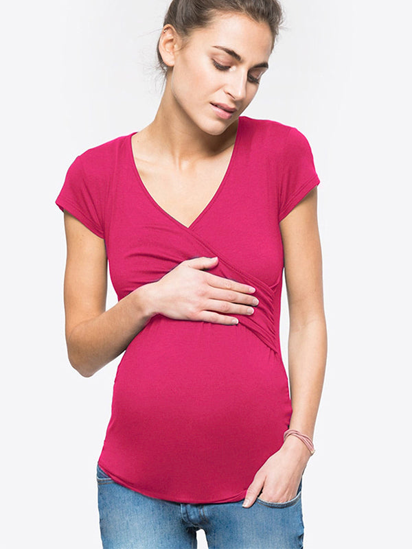Momyknows Cross Front V-Neck Breastfeeding Shirts Postpartum T-Shirt Plus Size Nursing Top