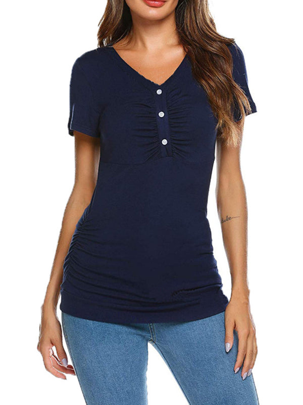 Momyknows Buttons Ruched Front Open Breastfeeding T-shirt Casual Maternity Nursing Top