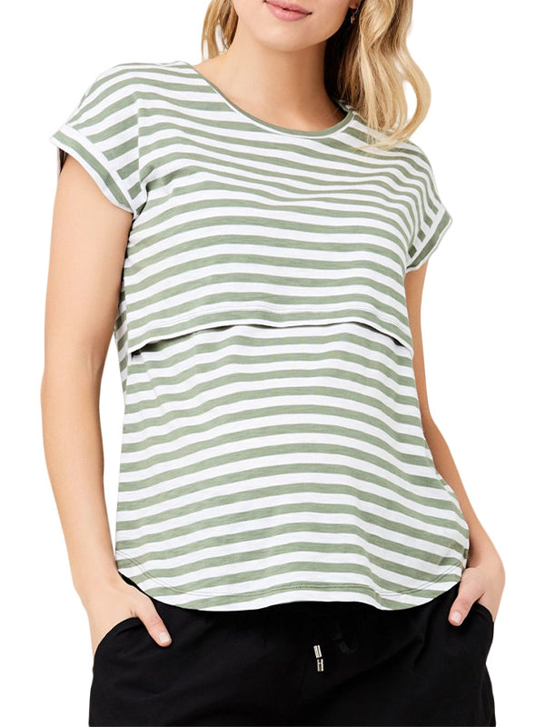 Momyknows Striped Double Layer Breastfeeding Daily Casual Home Maternity Nursing Top