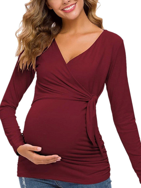 Momyknows Lace Up Cross Chest Maternity Nursing Tops