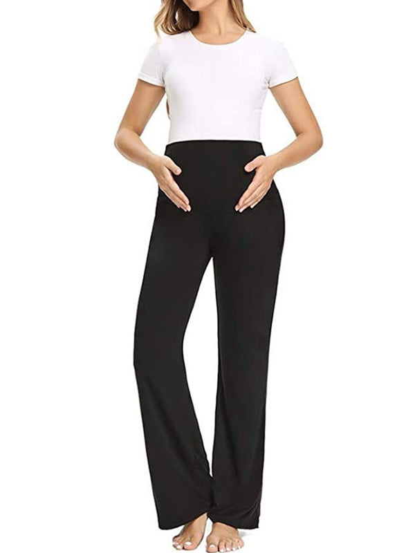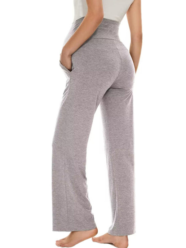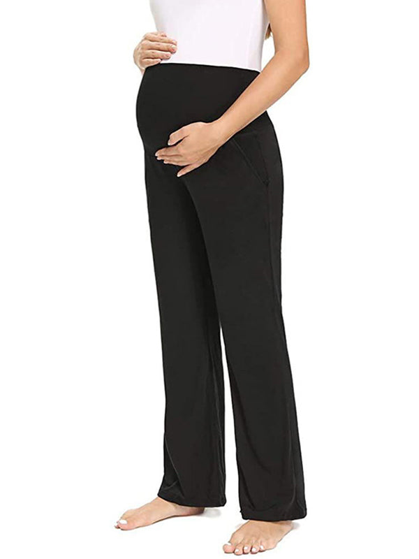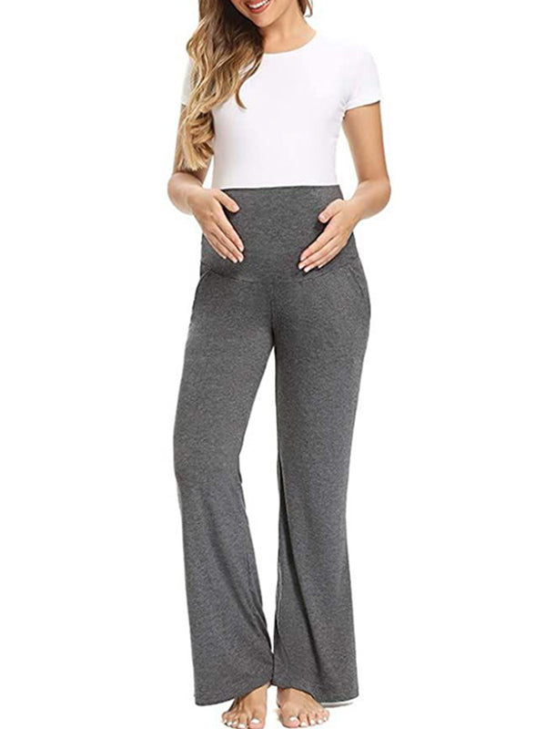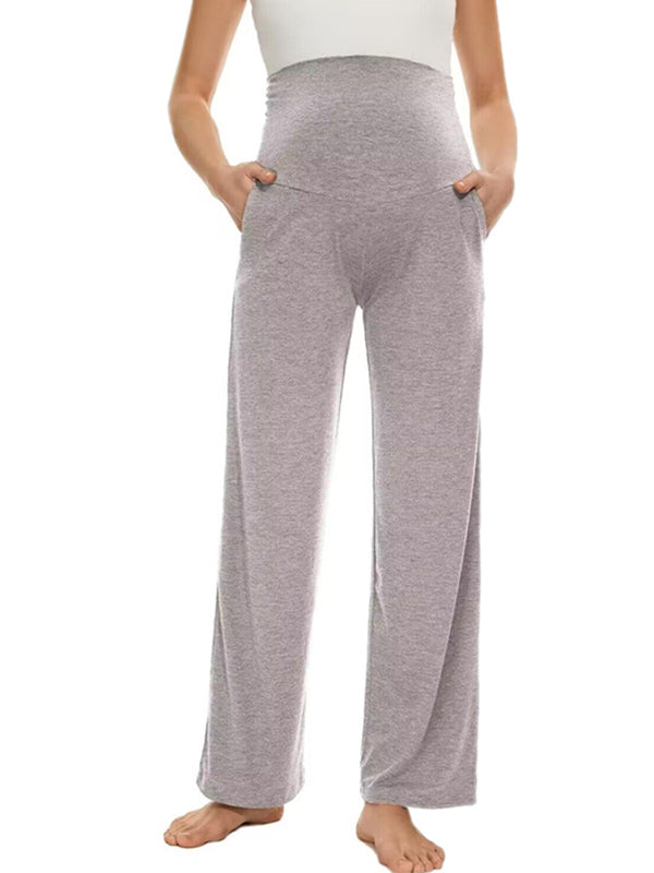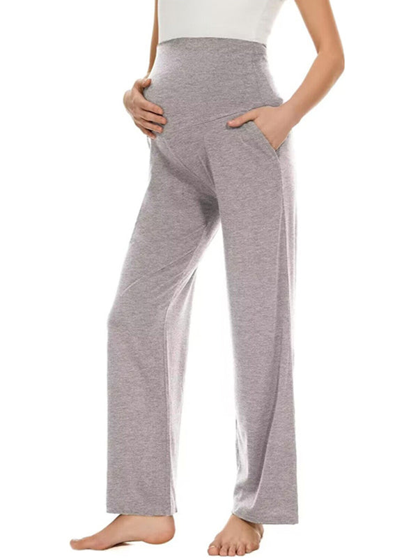 Momyknows Over Belly Pockets Comfy Stretchy Wide Leg Yoga Pajama Pants Maternity Trousers