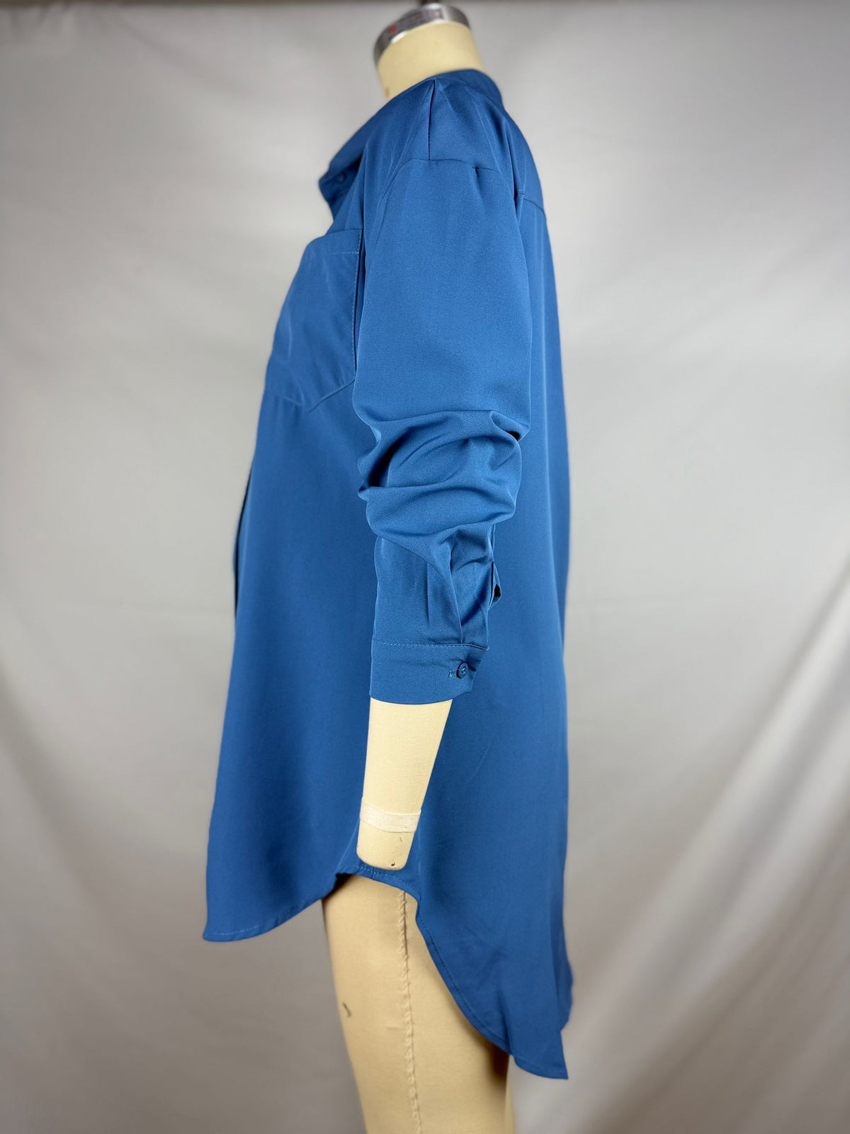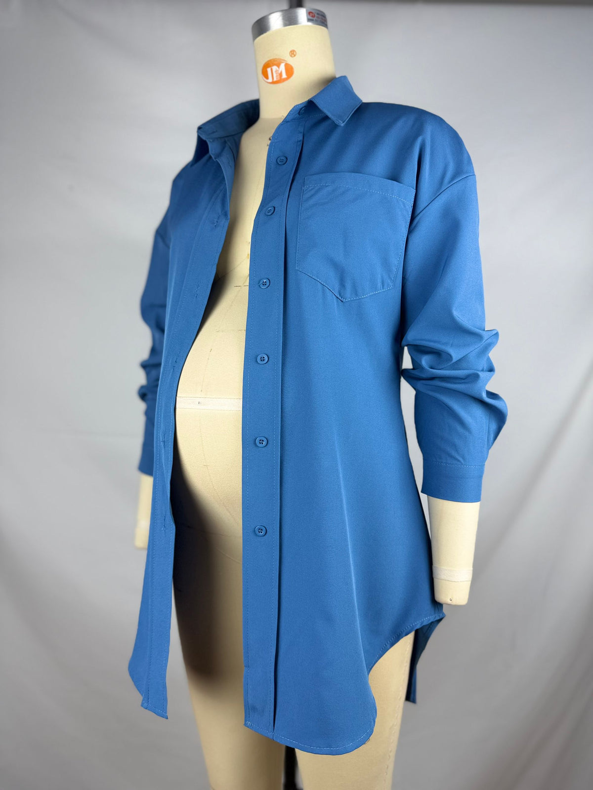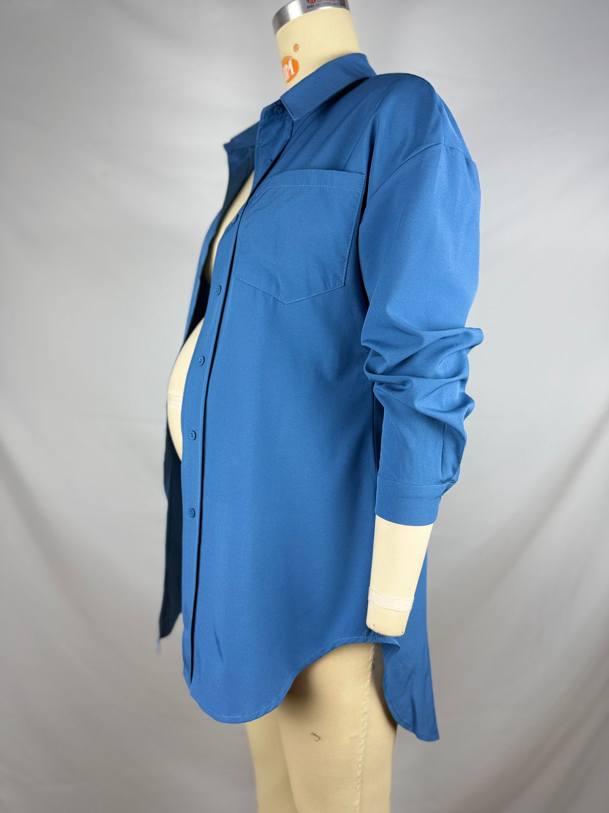 Momyknows Blue Buttons Irregularly Leisure Basic Maternity Photoshoot Shirt