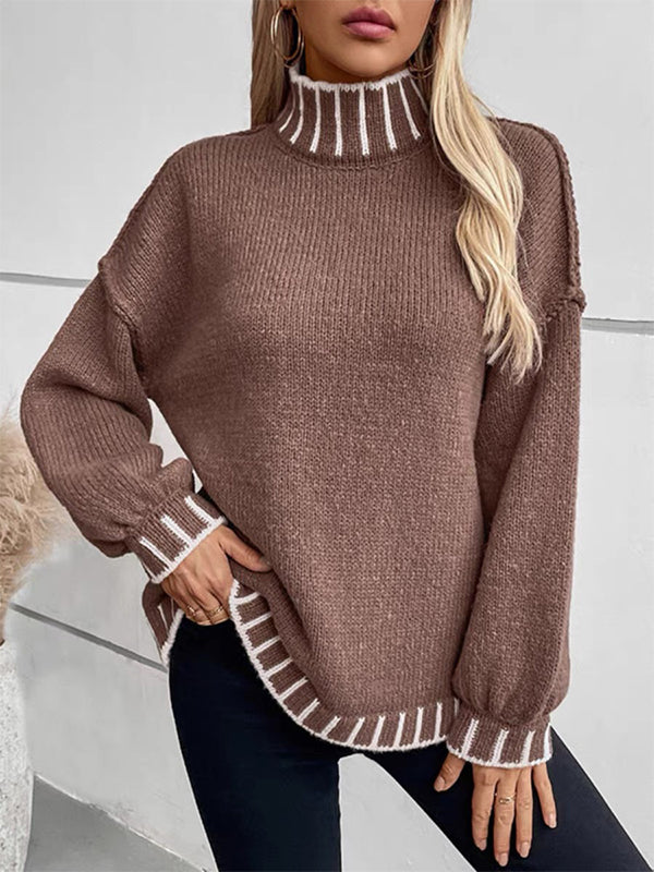 Momyknows Khaki Loose Half Turtleneck Maternity Pullover Sweater