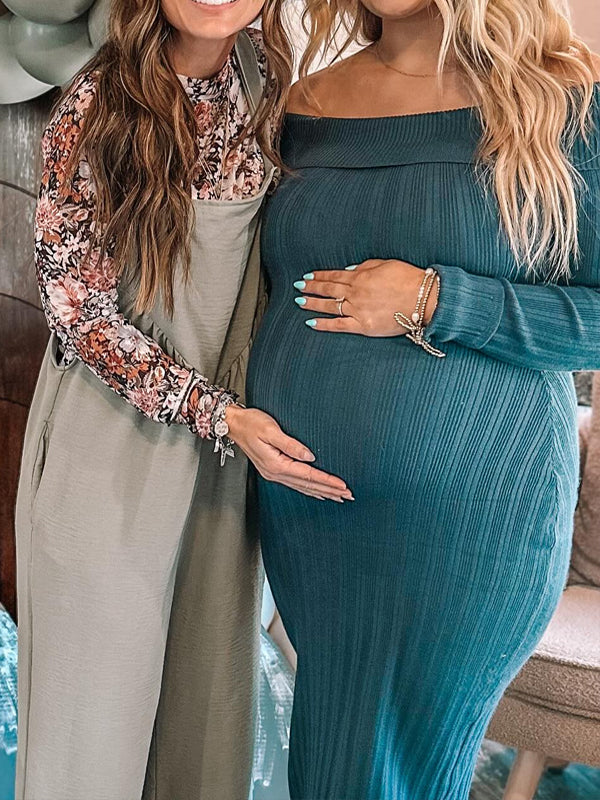 Momyknows Off Shoulder Backless Crochet Maternity Sweater Baby Shower Maxi Dress