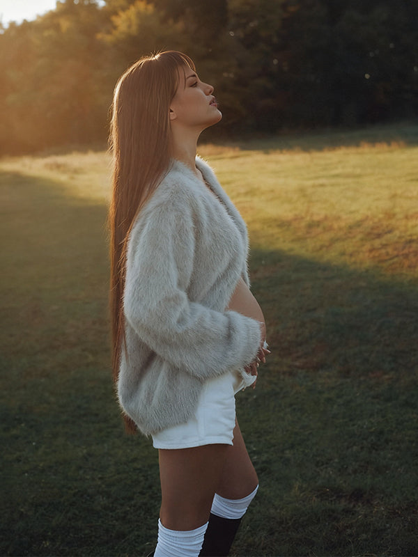 Momyknows Single Breasted Solid Color Photoshoot Maternity Sweater Fleece Cardigan