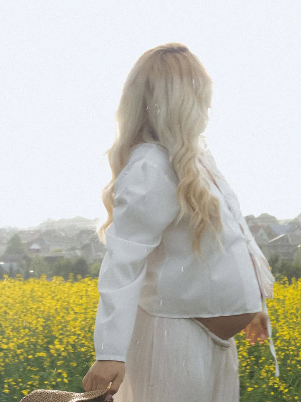 Momyknows White Lace-up Bow Photoshoot Maternity Top