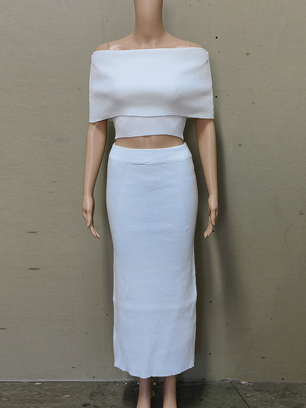 Momyknows Off Shoulder Side Slit Two Piece Maternity Photoshoot Sweater Maxi Dress