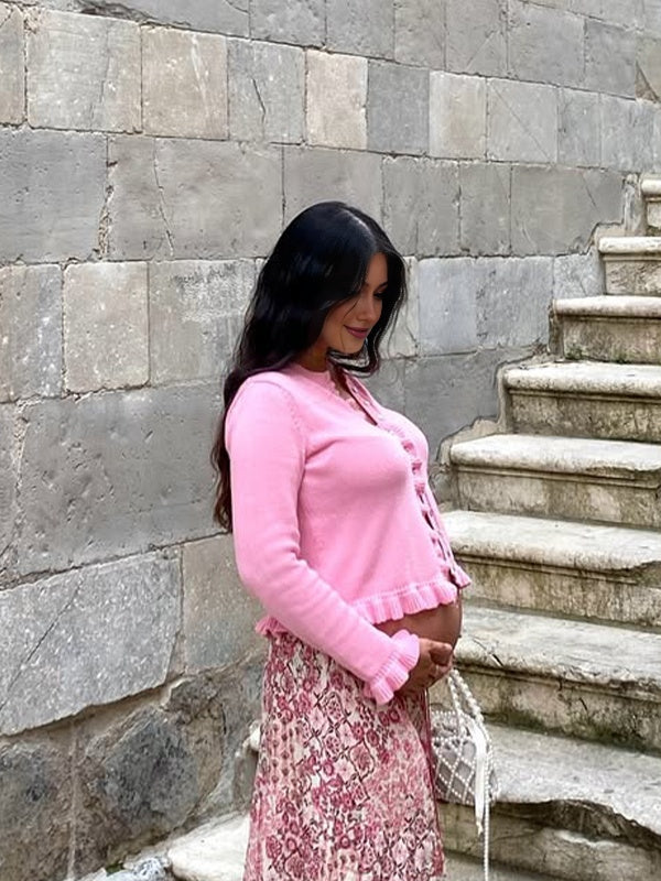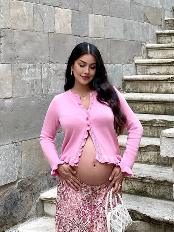 Momyknows Pink Crochet Ruffle Single Breasted Photoshoot Maternity Top