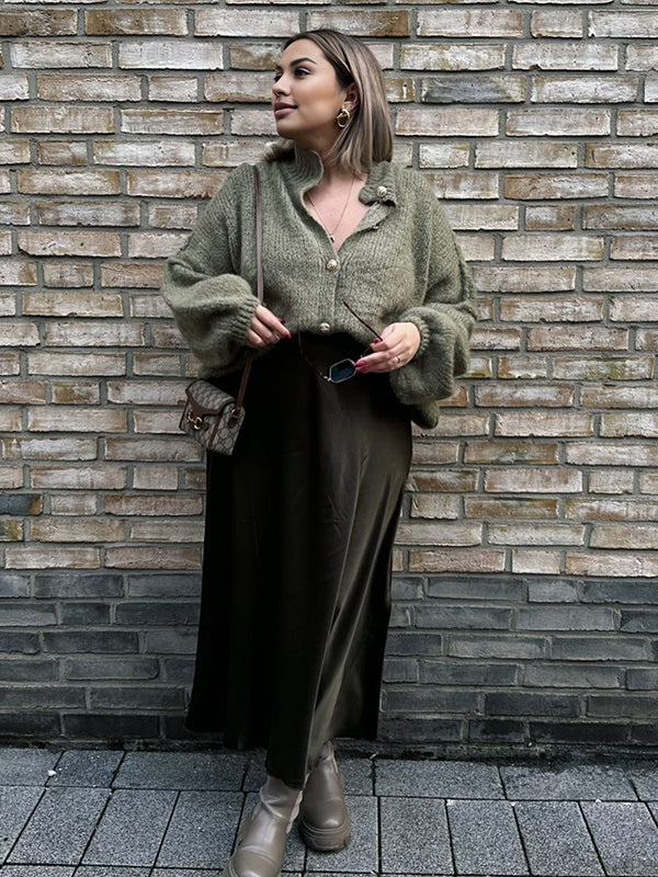 Momyknows Ivory Three-piece Cozy Knit Set Plus Size Crop Top Cardigan Fluffy Loungewear Casual Daily Maternity Outfit