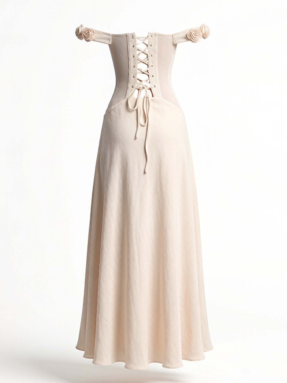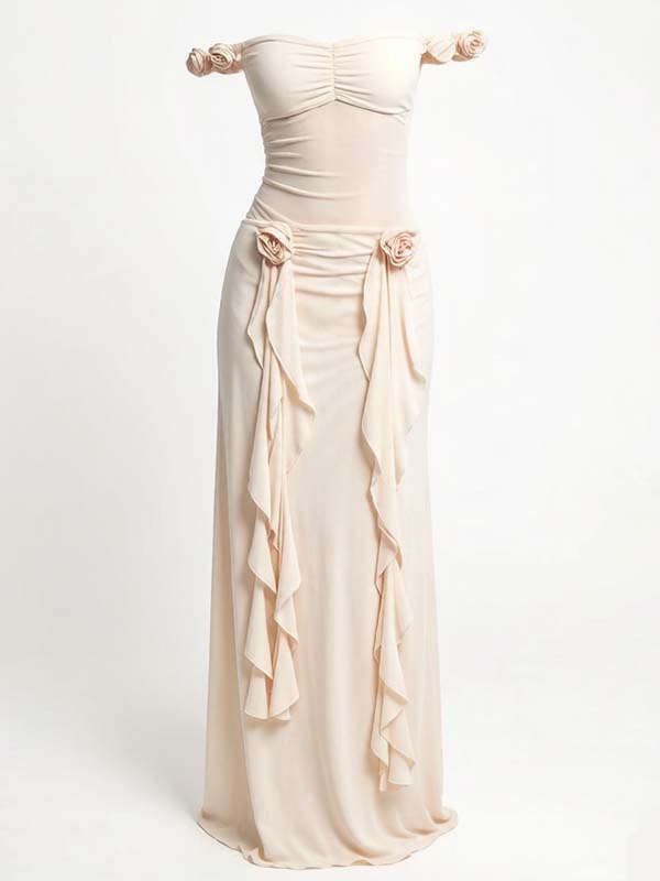 Decoration: Tie back, off shoulder, splicing, flower