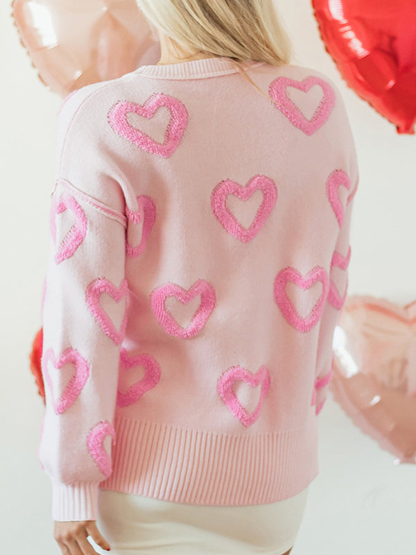 Momyknows Pink Oversize Knit Heart Maternity Sweater