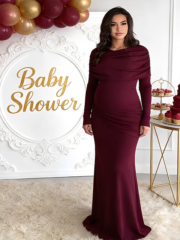 Momyknows Off Shoulder Ruched Backless Cape Spliced Maternity Baby Shower Maxi Dress