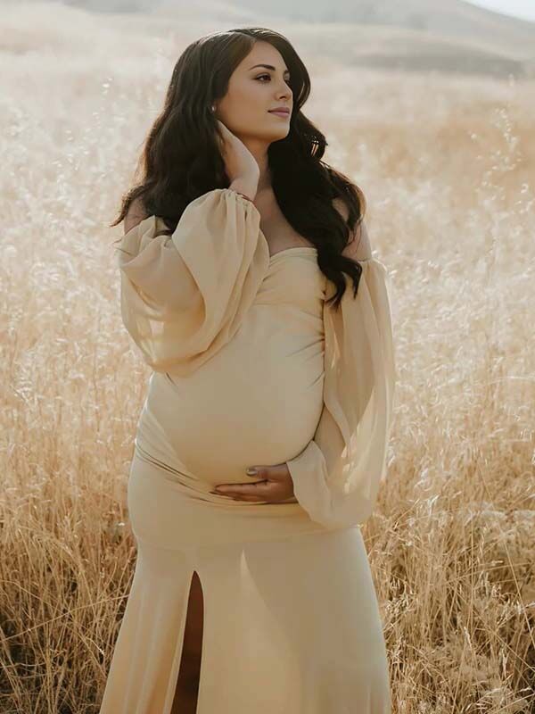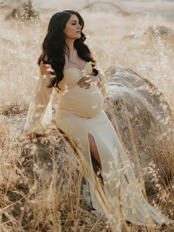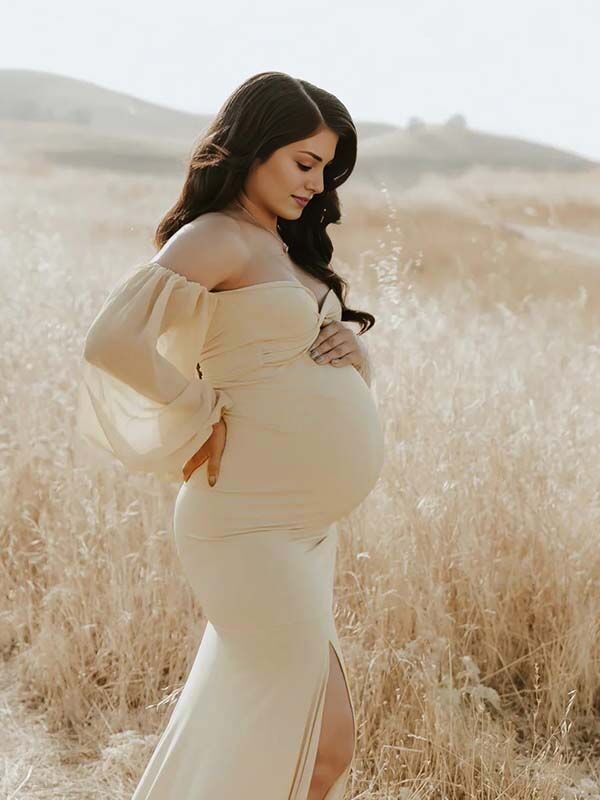 Momyknows Off Shoulder Side Slit Train Crop Multi Way Two Piece Set Boho Maternity Maxi Dress