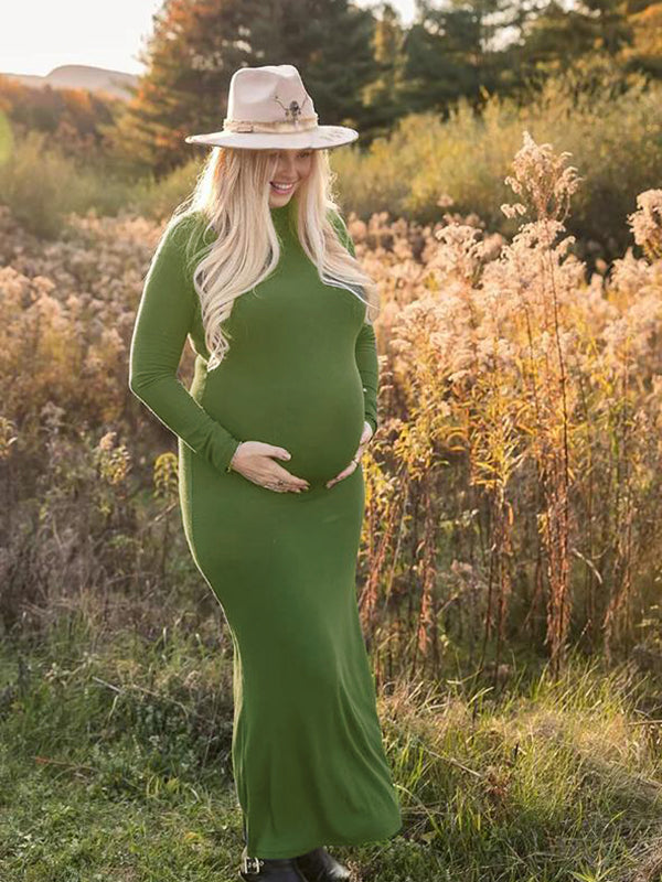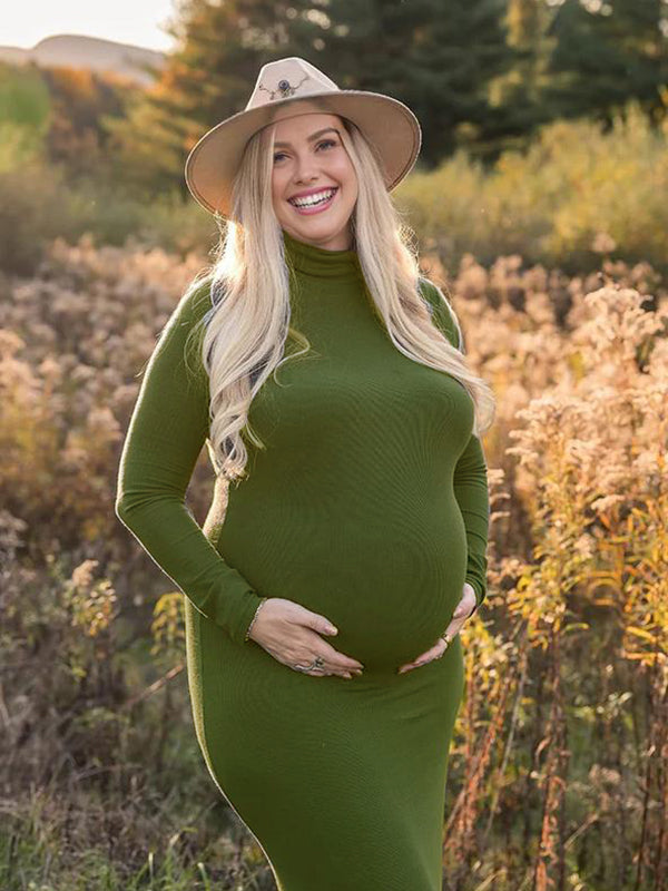 Momyknows Green High Neck Plus Size Maternity Photoshoot Maxi Dress
