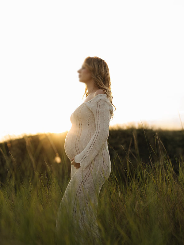 Momyknows Two Piece Light Knit Tissue Bodycon Elegant Baby Moon Cover Up Maternity Photoshoot Maxi Dress