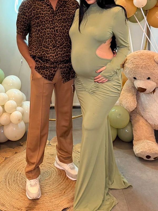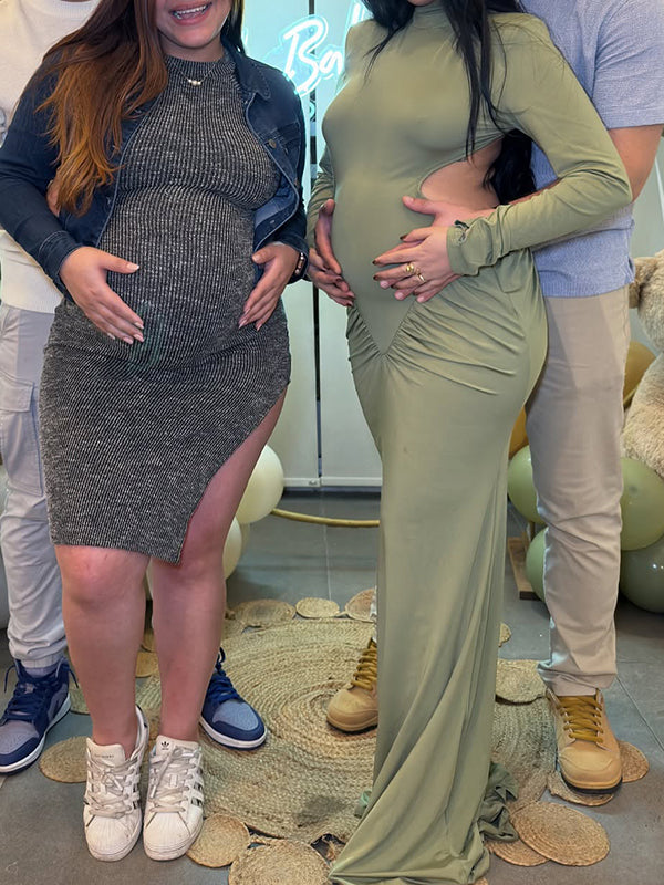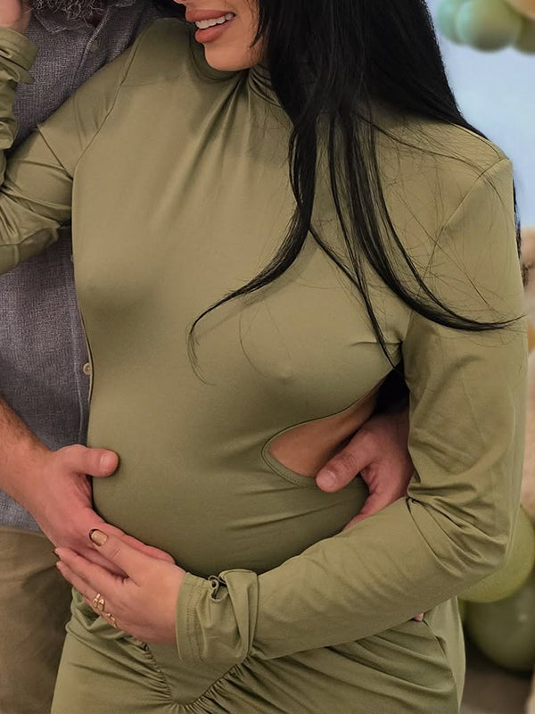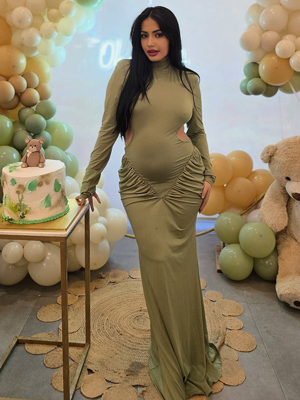 Momyknows Cut Out Ruched Backless Mermaid Elegant Maternity Maxi Dress