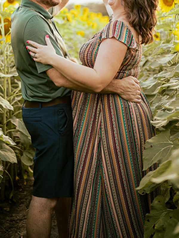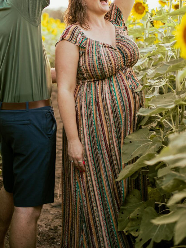 Momyknows Multicolor Off Shoulder Print Maternity Photoshoot Maxi Dress