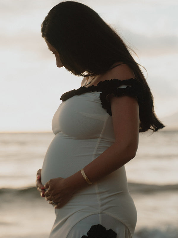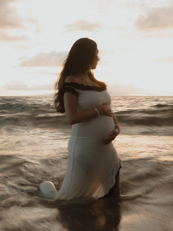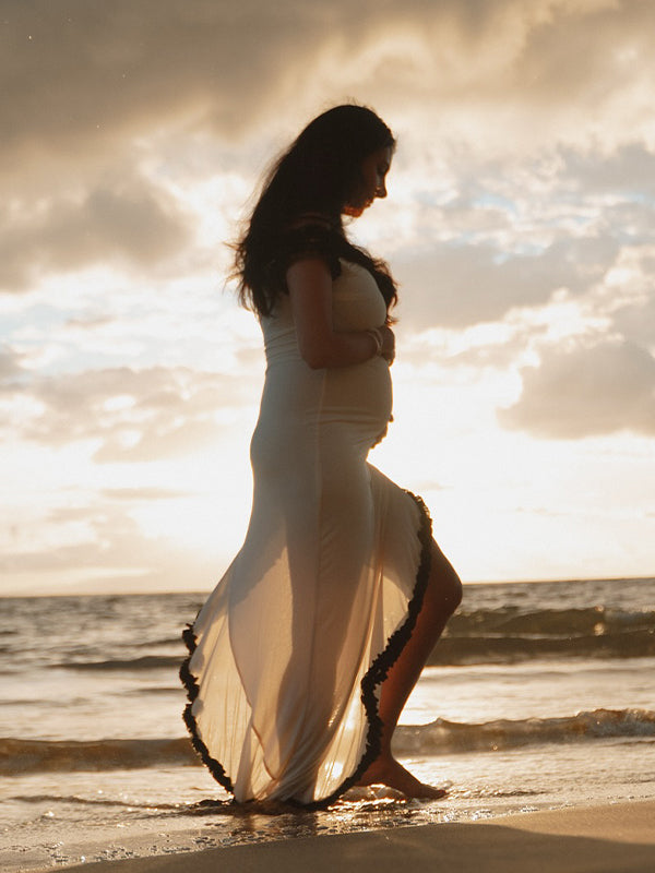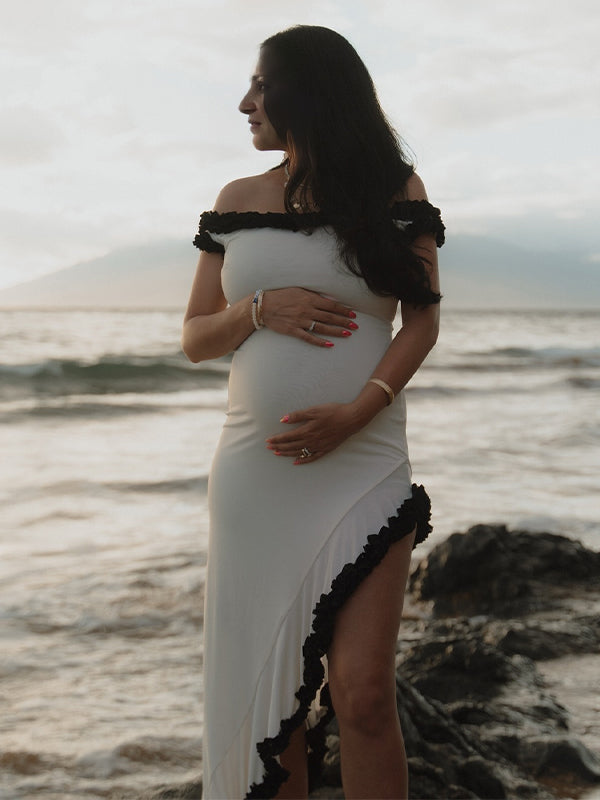 Momyknows Off Shoulder Ruffle Irregular Photoshoot Maternity Maxi Dress