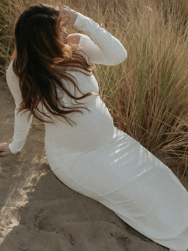 Momyknows Pink Oblique Shoulder Ruched Maternity Photoshoot Maxi Dress