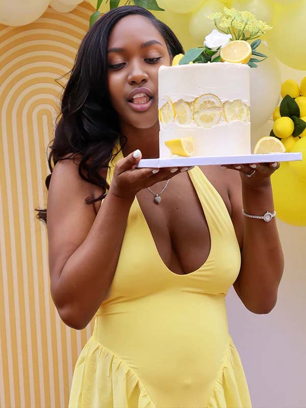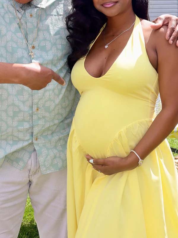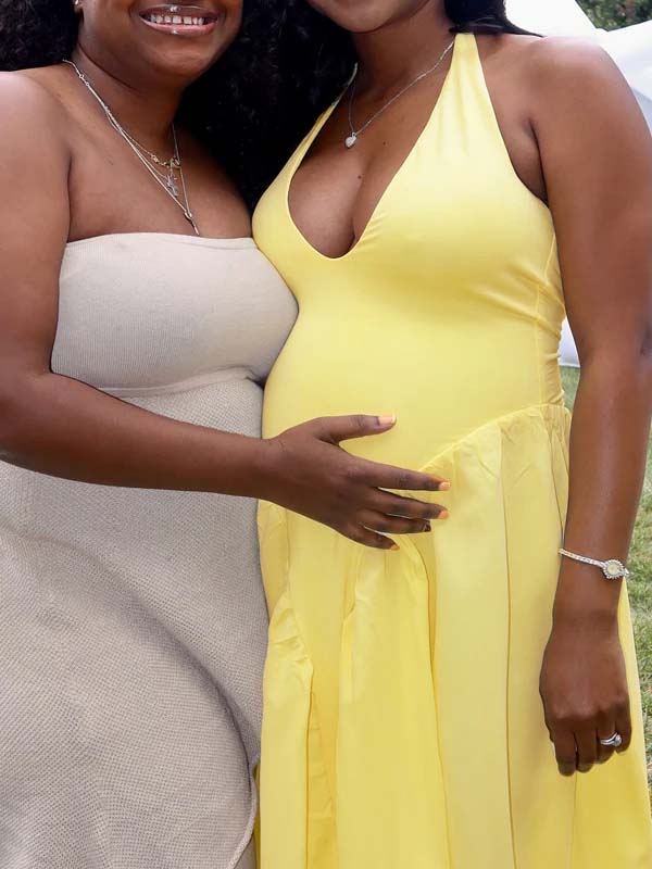Momyknows Yellow Halter Neck Lace-up Maternity Baby Shower Maxi Dress
