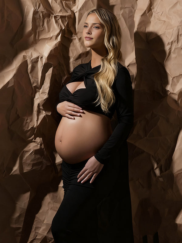 Momyknows Cross Chest Ruched Two Piece Maternity Baby Shower Maxi Dress